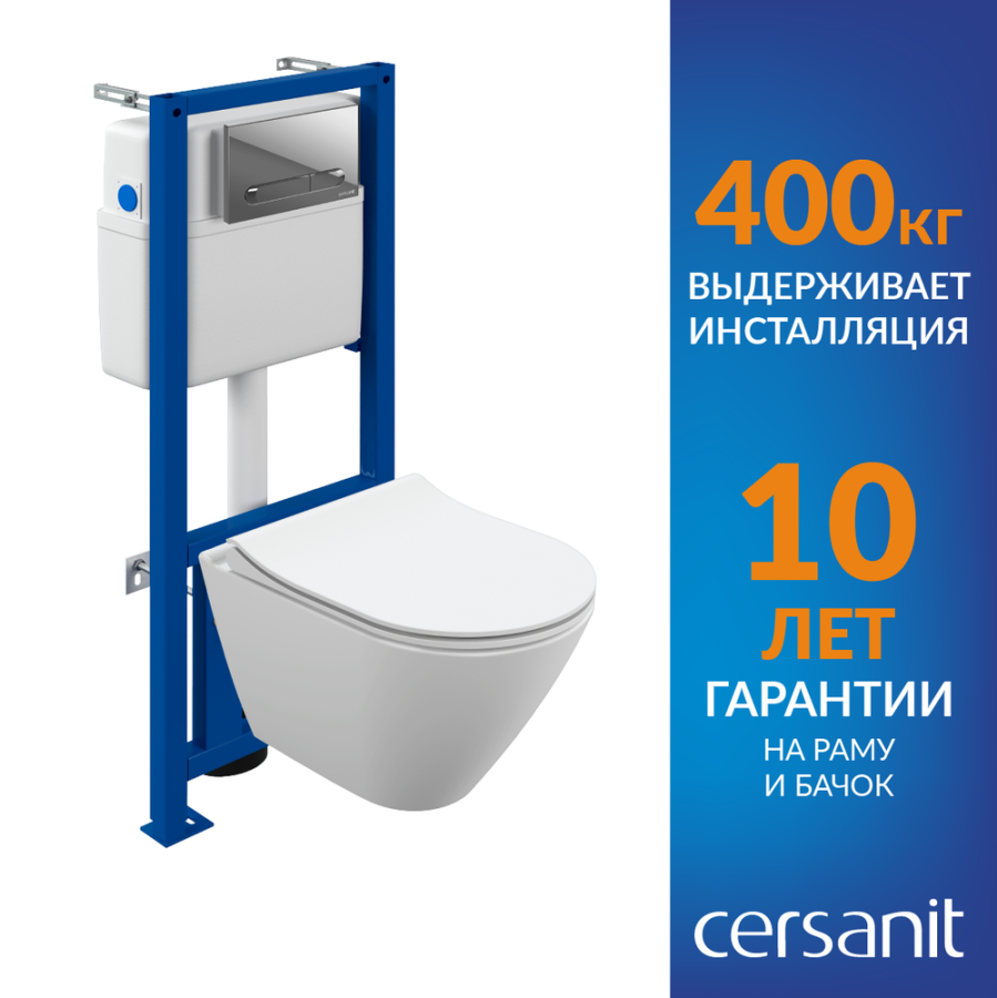 Инсталляция Cersanit Link Pro с унитазом Cersanit City без смывного обода с микролифтом 68269