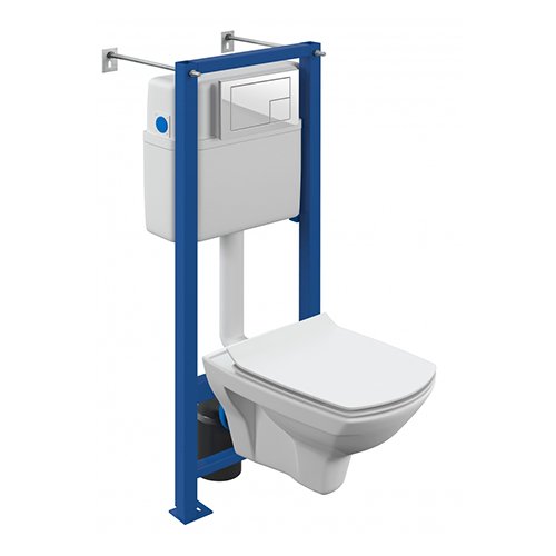 Инсталляция Cersanit Vector с унитазом Cersanit Carina XL с микролифтом, кнопка белая