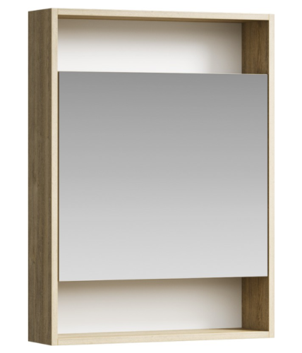 Универсальный левый/правый зеркальный шкаф с одной дверью и двумя открытыми полками, цвет дуб балтийский