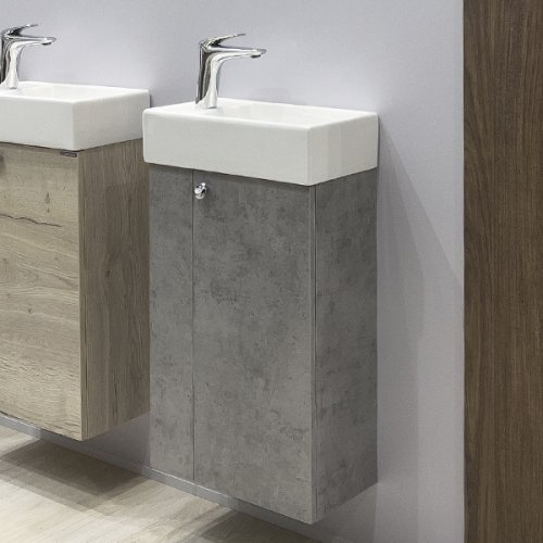 Компактная подвесная тумба-умывальник Comforty Асти для небольших санузлов. Фасад и корпус тумбы изготовлены из влагостойкого ДСП. В комплекте асимметричная раковина с отверстием под смеситель сбоку. Раковина может быть установлена как в правом, так и в левом варианте.