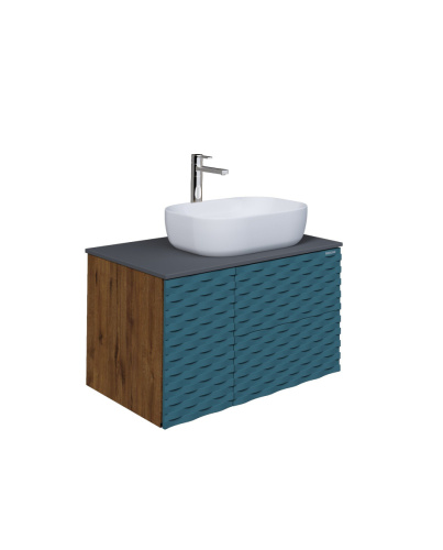 Тумба подвесная Альба 80 см - функциональное и практичное исполнение. Матовая фактура в цвете Бриз с 3D рисунком безупречно сочетается с фактурой под дерево и позволяет тумбе органично вписаться в интерьер ванной комнаты.