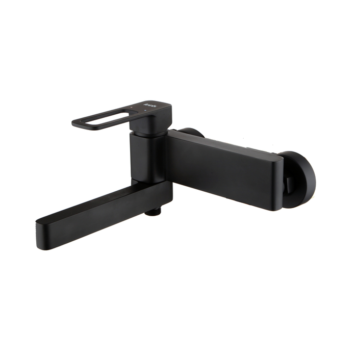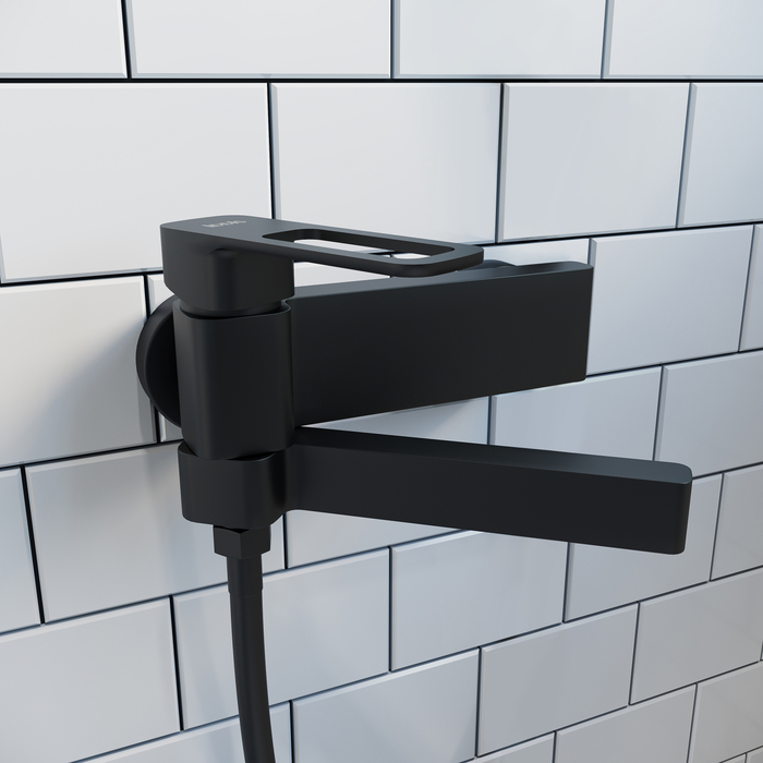 Смеситель для ванны Slide в матовом черном цвете со складным изливом — стильное функциональное решение без лишних деталей, подойдет и для ванны, и для душевой кабины. Отверстие-петля на ручке выполняет декоративную и при этом практичную роль — ее легко захватить даже намыленной рукой и отрегулировать напор или температуру. Без душевых аксессуаров в комплекте.