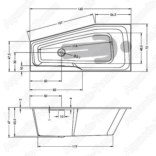 Акриловая ванна Aquatek Дива 170х90 (L)